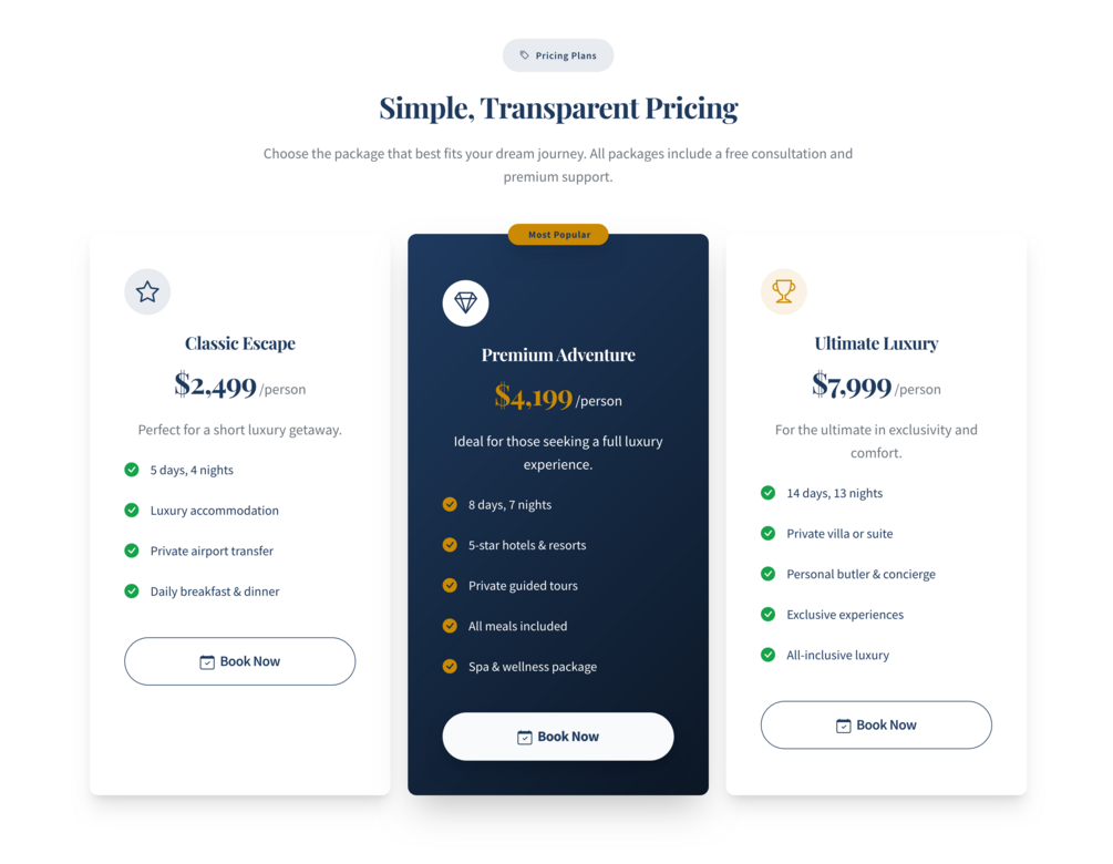 ✨ Luxury Travel Landing Page Template (Free + Source Code)