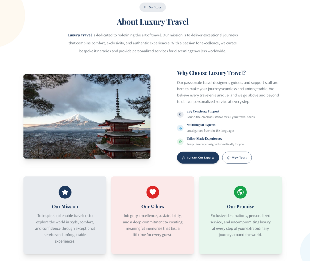 This landing page is perfect for travel agencies, tour companies, or personal projects related to premium travel services.